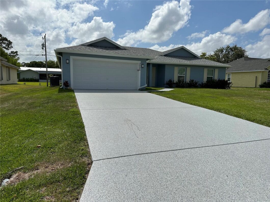 This is a rare opportunity. This practically new block home with 4 bedroom/3 bath home is ready for new owners! Tile in the main living areas, carpet in the bedrooms well kept home. Open floor plan with 30″ wood upper cabinets, solid surface countertops, vented microwave, all stainless steel appliances, laundry room off the kitchen area, back lanai, plenty of room for a pool. Gutters put on the home in 2023, driveway with polyurea/polyaspartic coverage.This home features 2,078 sq ft and was built in 2021. Close proximity to shopping, restaurants and schools.